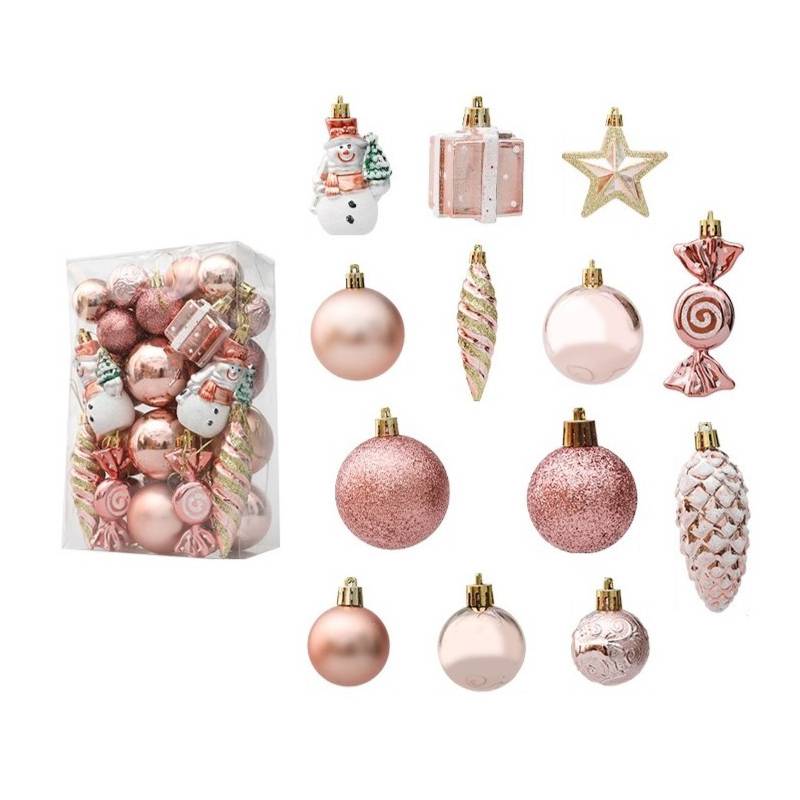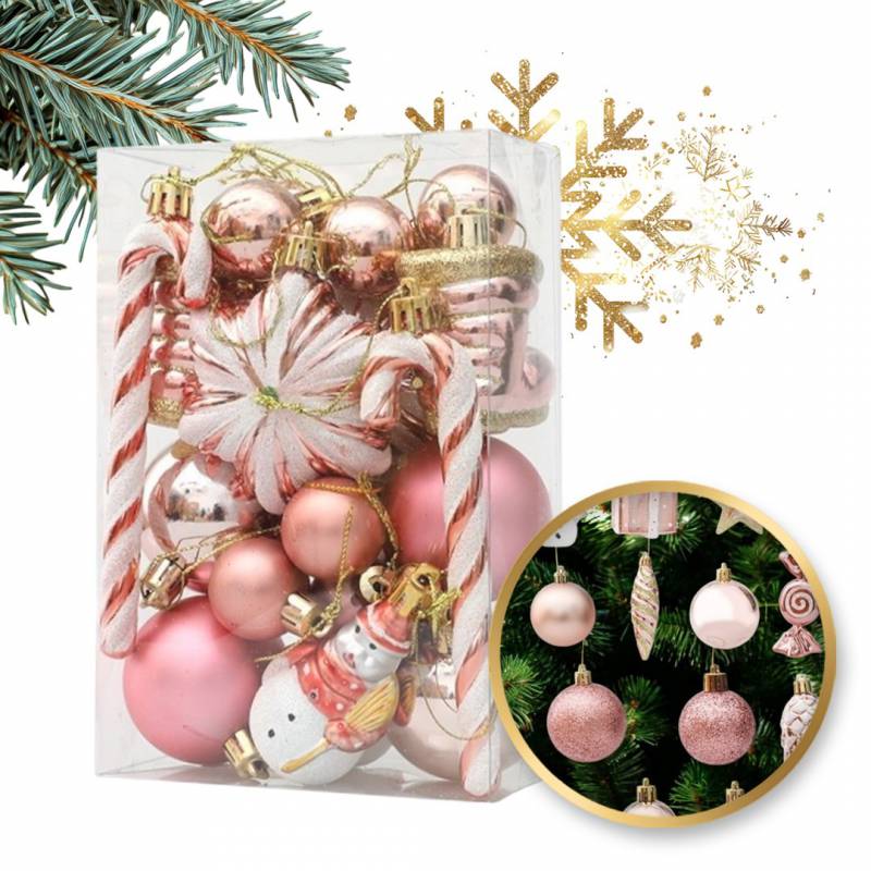 Komplet Bombek Bożonarodzeniowych 29 Sztuk W Opakowaniu Średnica Cm Różowe Bsn50