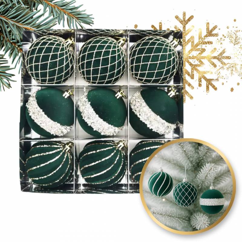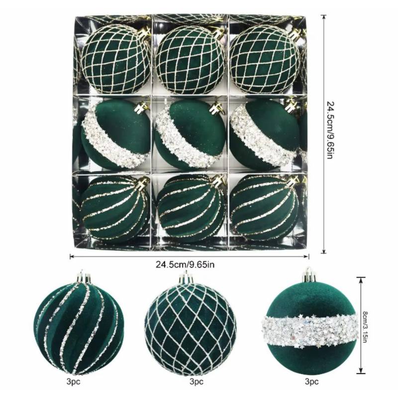 Komplet Bombek Bożonarodzeniowych 9 Szt. Opakowaniu, Welurowe, Średnica 8Cm Bsn68