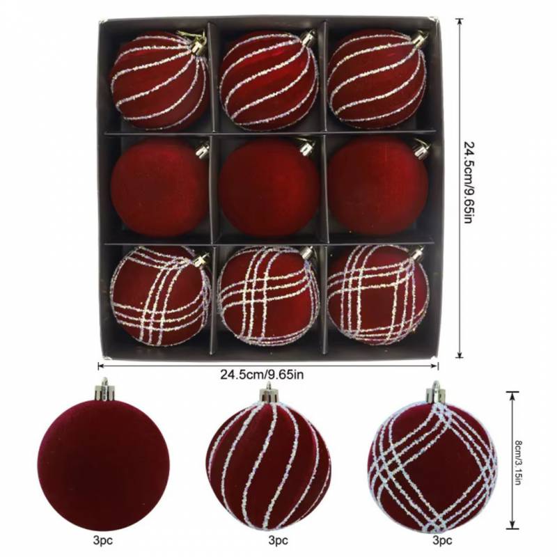 Komplet Bombek Bożonarodzeniowych 9 Szt. Opakowaniu, Welurowe, Średnica 8Cm Bsn67