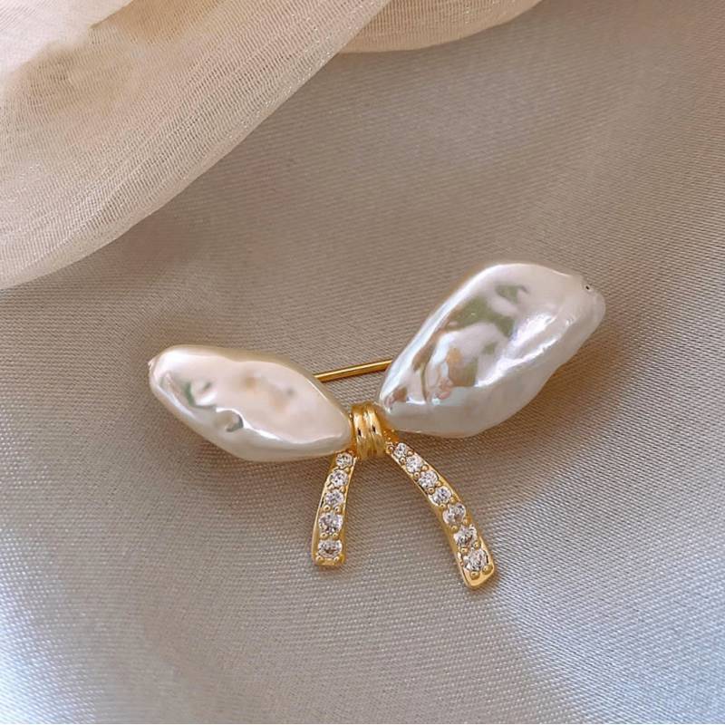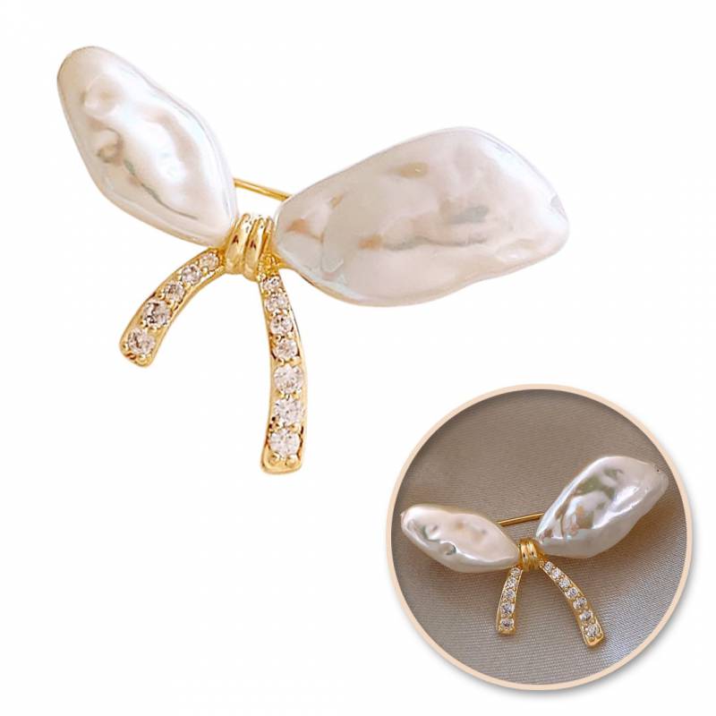 Broszka Ozdobna - Kokarda Perły Z Cyrkoniami Bz213