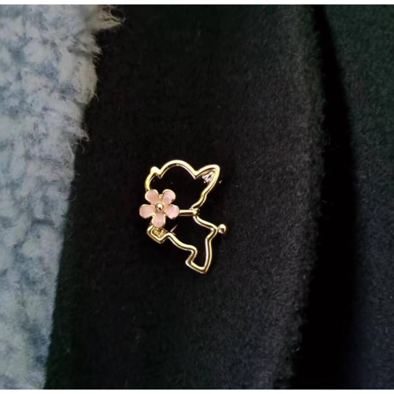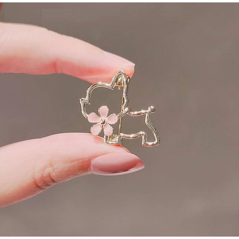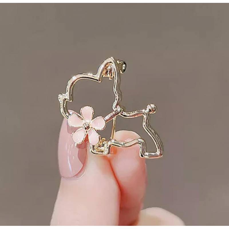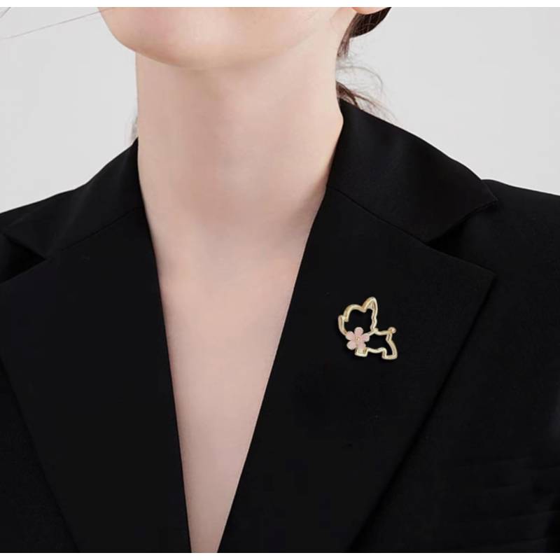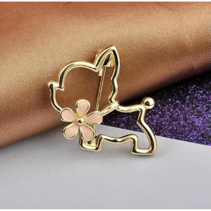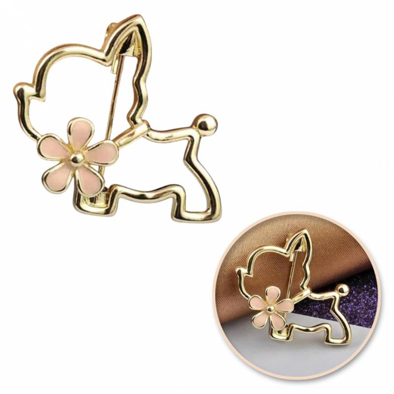 Broszka Ozdobna Emaliowana - Piesek Z Kwiatkiem Bz210