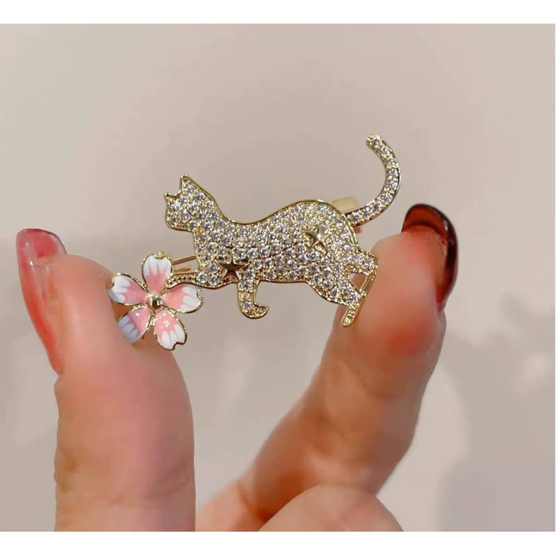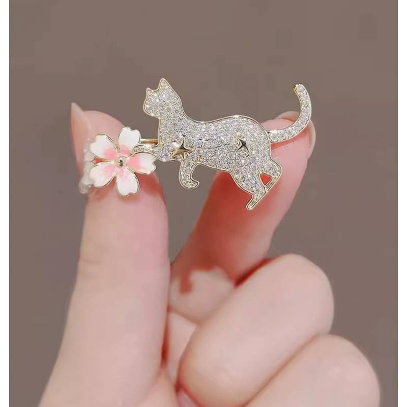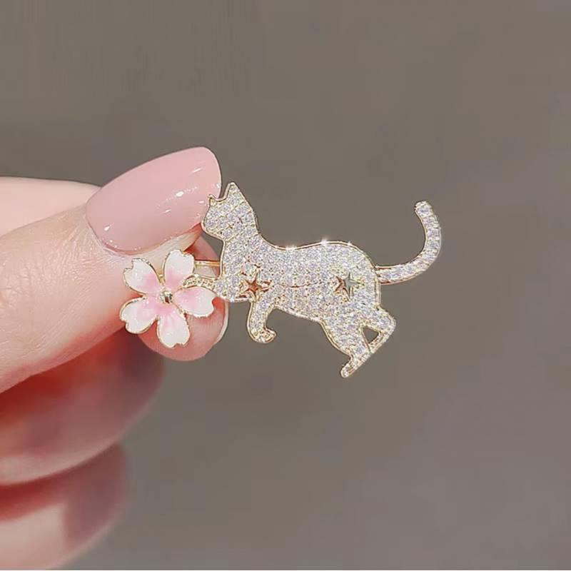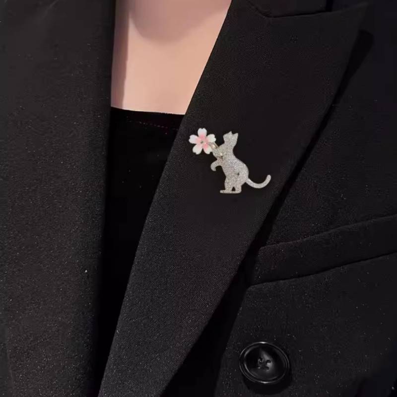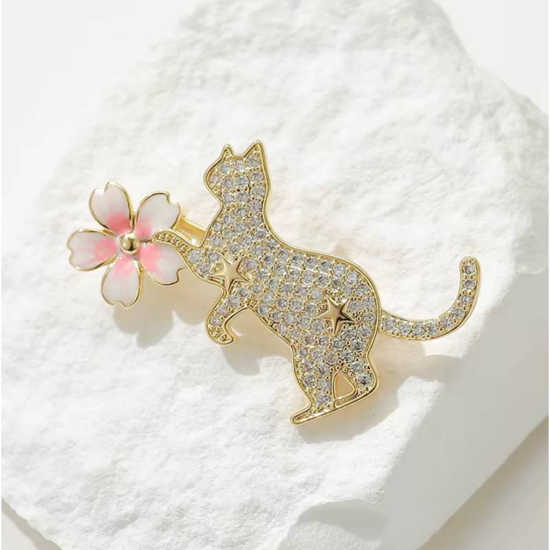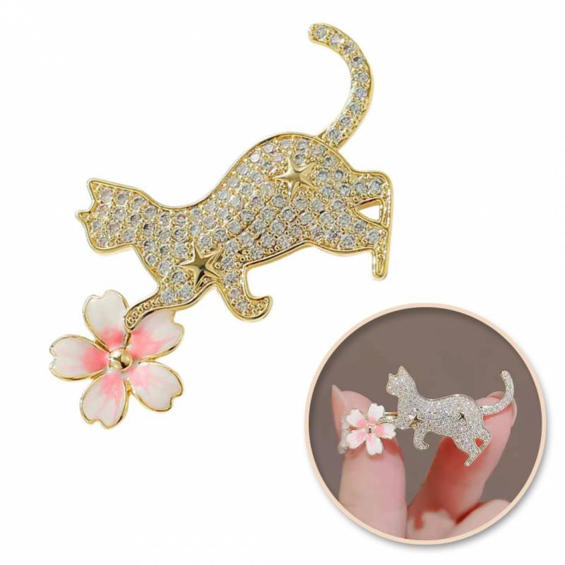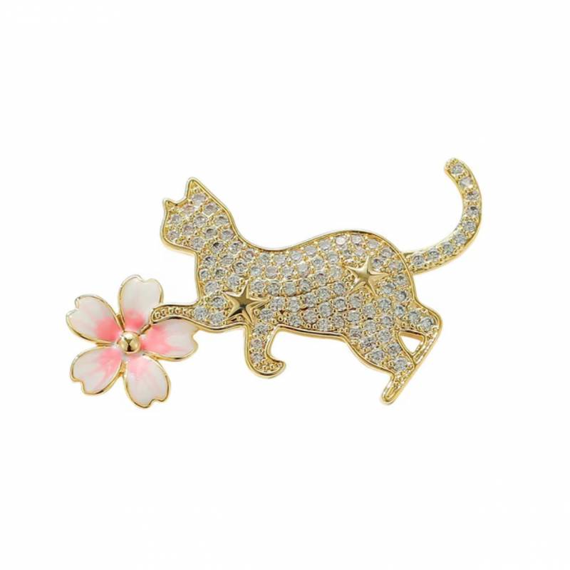 Broszka Ozdobna Emaliowana - Kotek Z Kwiatkiem Bz211
