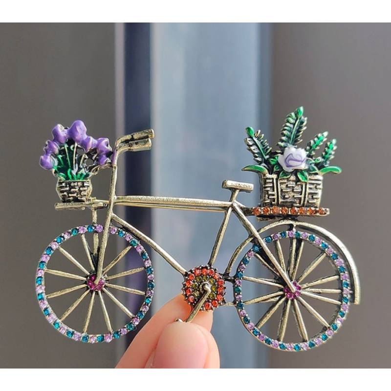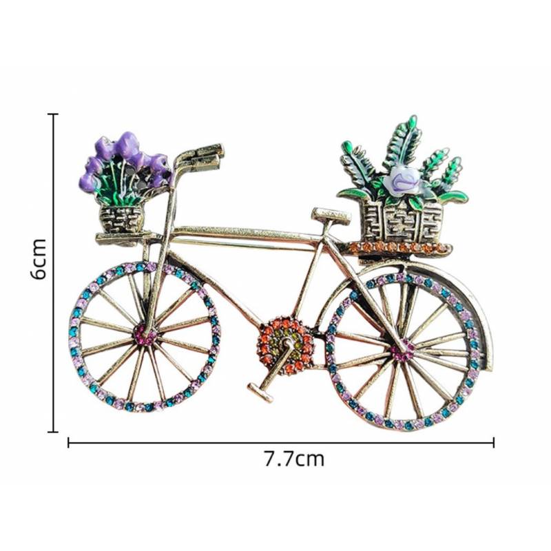 Broszka Ozdobna Kryształki Kolorowy Rower Z Kwiatami Bz168