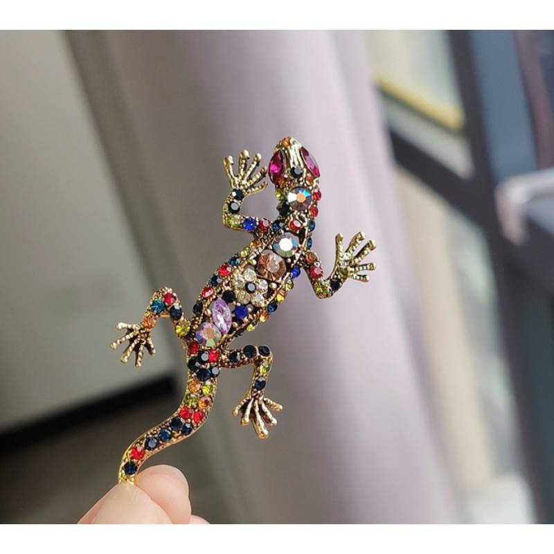 Broszka Ozdobna Kryształki Kameleon Kolorowy Bz167