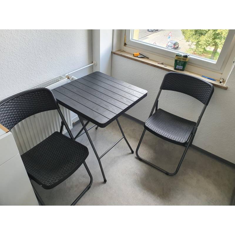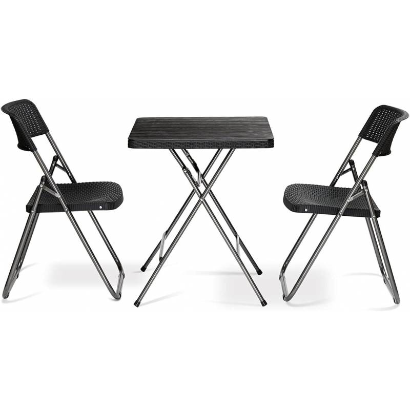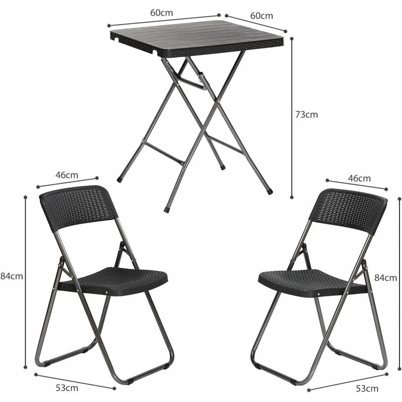 Zestaw Mebli Ogrodowych 3W1 Stół + 2 Krzesła Imitacja Rattanu, Balkonowy Czarny Sc07
