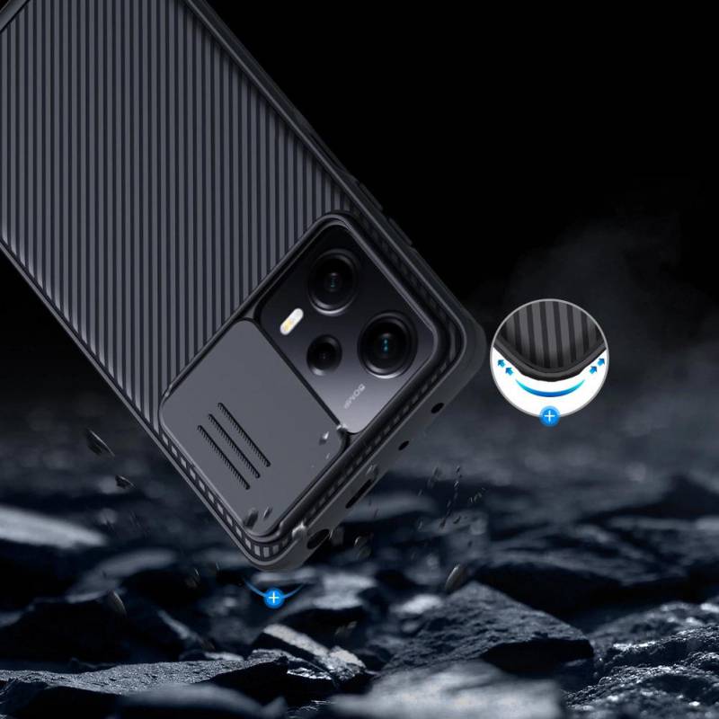Smukłe i eleganckie etui Nillkin CamShield Pro Case, które zabezpiecza urządzenie przed uszkodzeniami, a dodatkowo posiada przesuwaną osłonę na tylny aparat. Pokrowiec jest dopasowany do Xiaomi Redmi Note 12 Pro / Poco X5 Pro 5G, doskonale chroni telefon przed zniszczeniami wskutek upadków lub zarysowań (na przykład przez noszone w kieszeni klucze). Pokrowiec posiada przesuwaną osłonę na tylny aparat. Dzięki niej szkło kamery jest chronione przed porysowaniem. Jest do też dodatkowy plus dla osób ceniących prywatność i bezpieczeństwo swoich danych. Zakryta kamera uniemożliwia dostęp do nagrywania obrazu w przypadku kiedy ktoś uzyska zdalny dostęp do telefonu i włączy podgląd z głównej kamery. Podniesione krawędzie dookoła ekranu zabezpieczają go od zarysowania kiedy ten leży na płaskiej powierzchni.