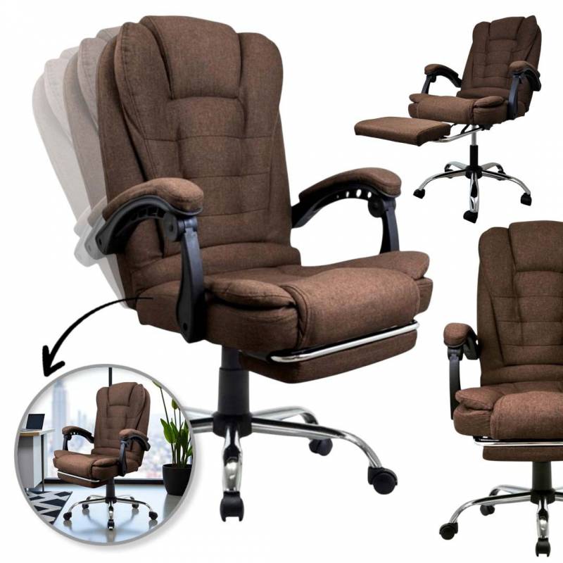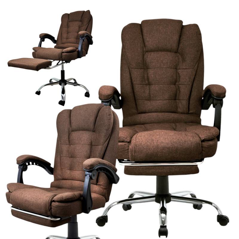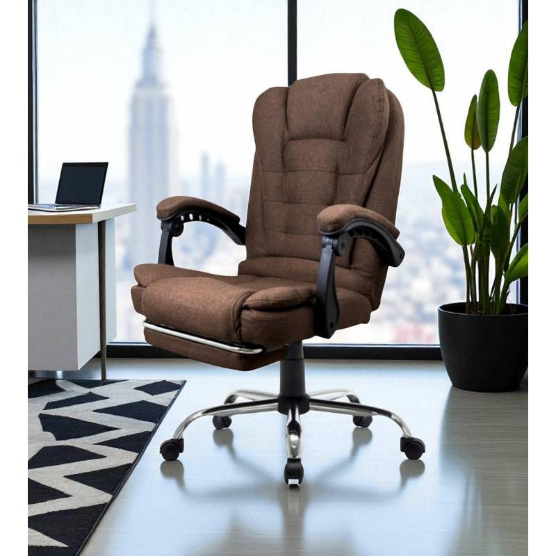 Fotel Biurowy Obrotowy Boss Z Podnóżkiem - Brązowy Materiał Ko22Br-Mat