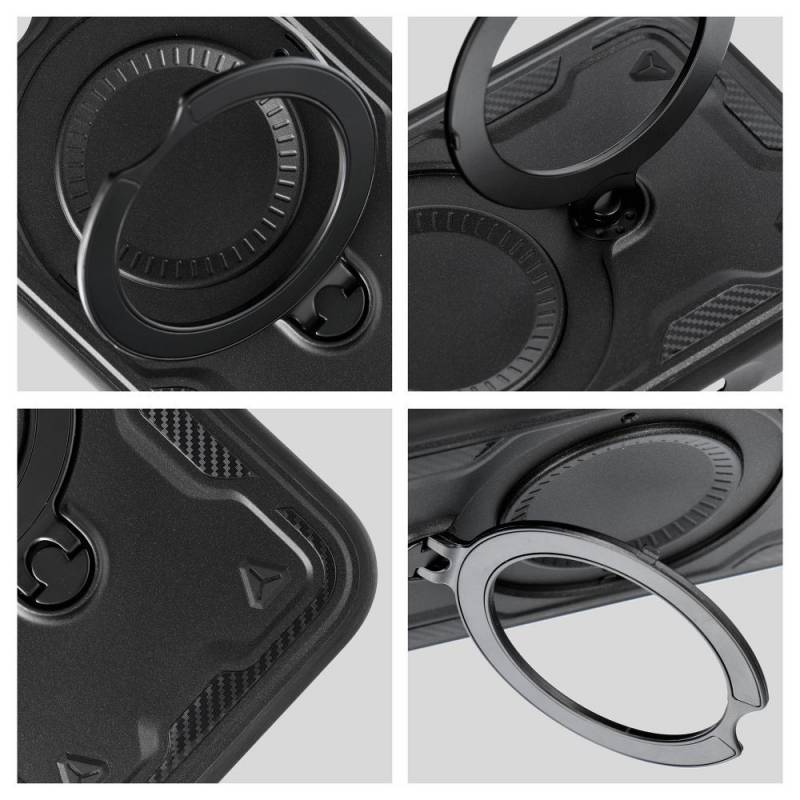 Chowany w obudowie ring pełni funkcję stabilnej podstawki, umożliwiając wygodne ustawienie telefonu w poziomie – doskonałe rozwiązanie podczas oglądania filmów lub zdjęć. Po złożeniu ring wtapia się w obudowę nie przeszkadzając w ładowaniu lub korzystaniu z urządzenia.