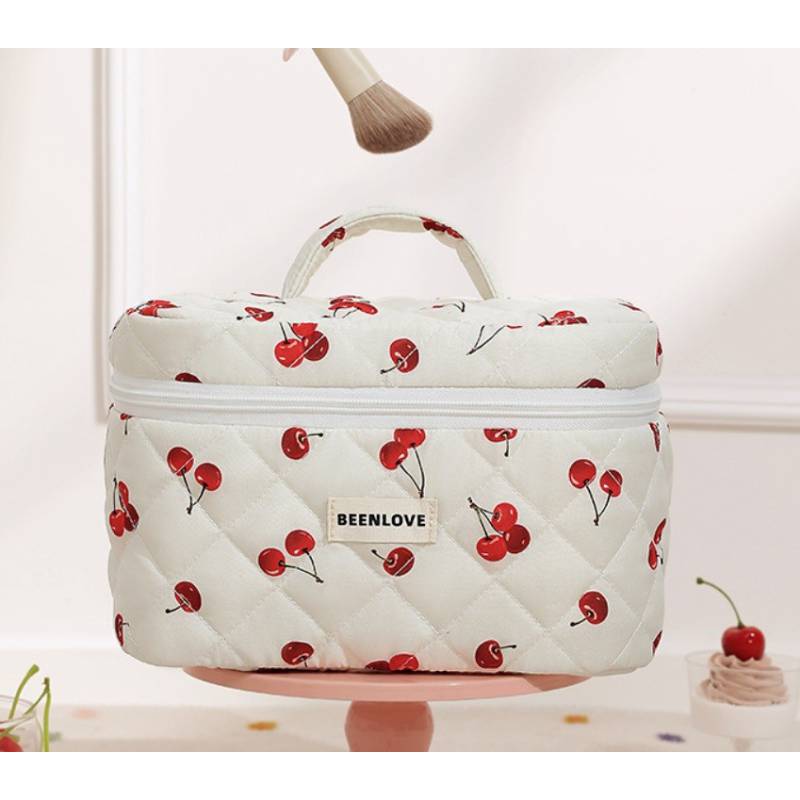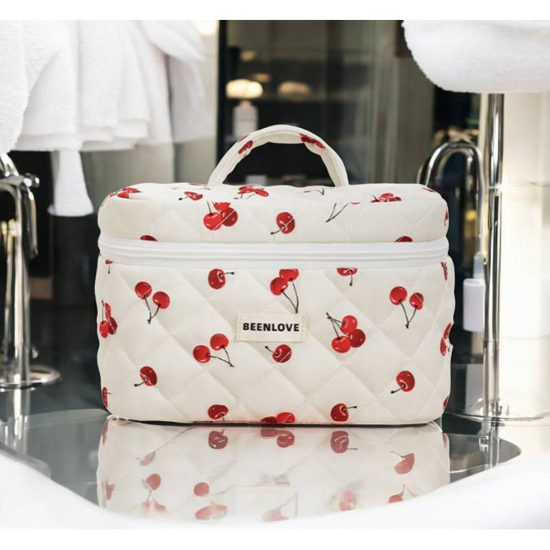 Kosmetyczka Damska Pikowana Kuferek W Wisienki 17 X 17 X 25,5Cm Ks123