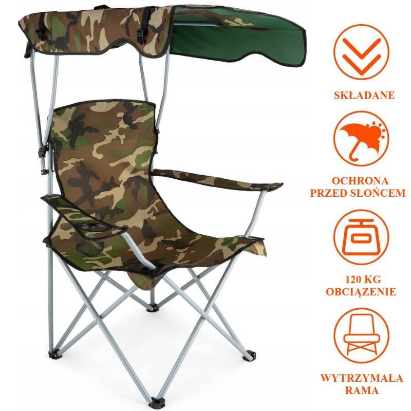 Składane Krzesło Turystyczne, Wędkarskie Z Daszkiem Krt07Moro