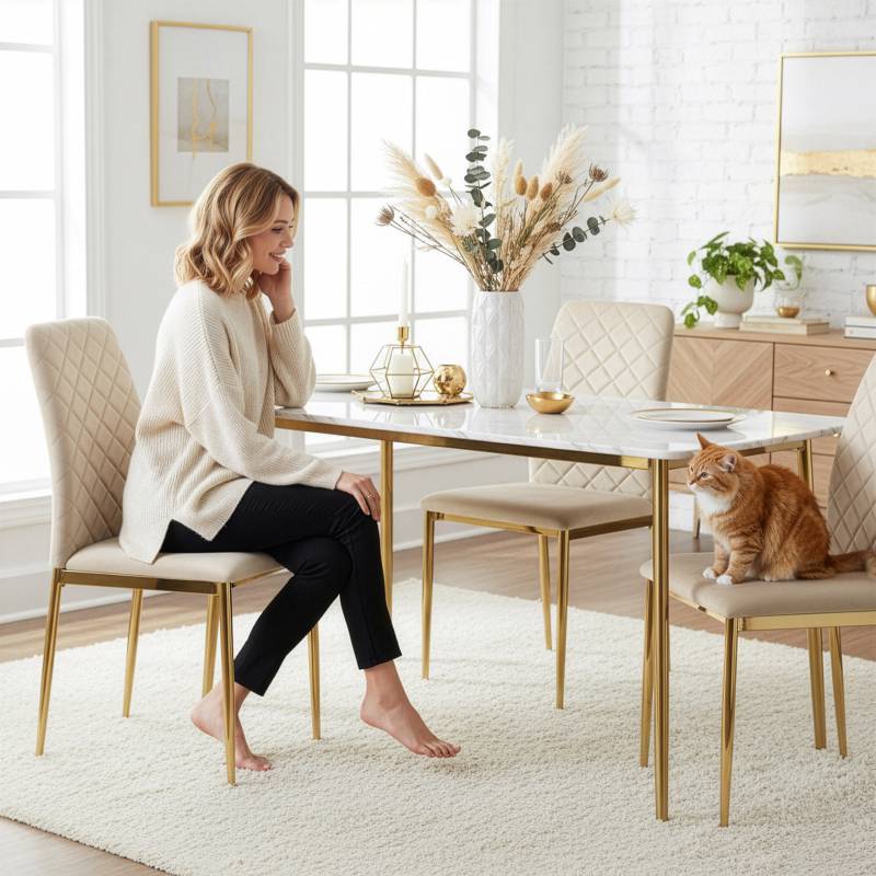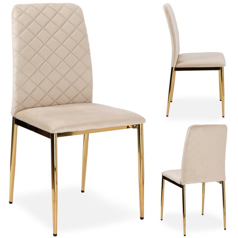 Krzesło Welurowe Tapicerowane Maverik Velvet Gold Beżowe