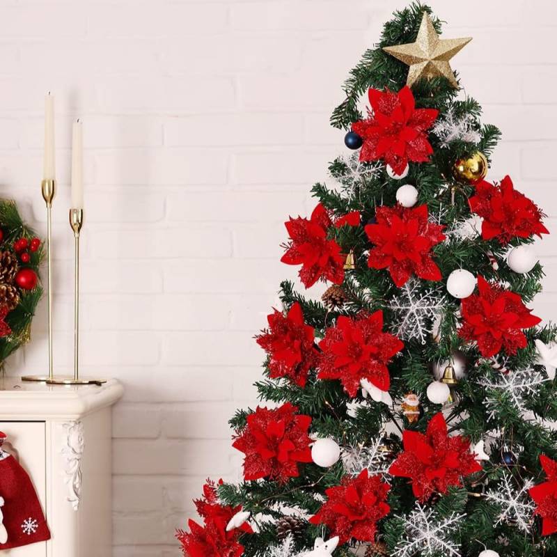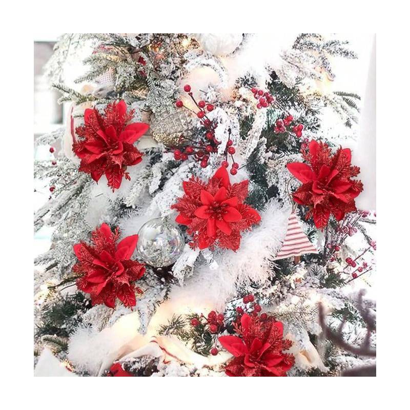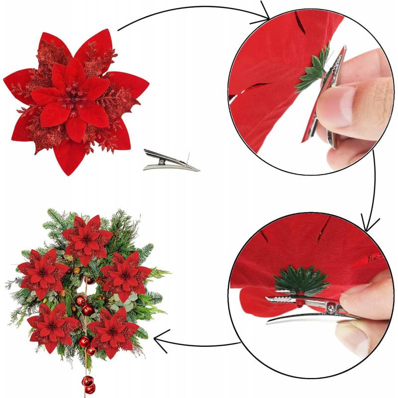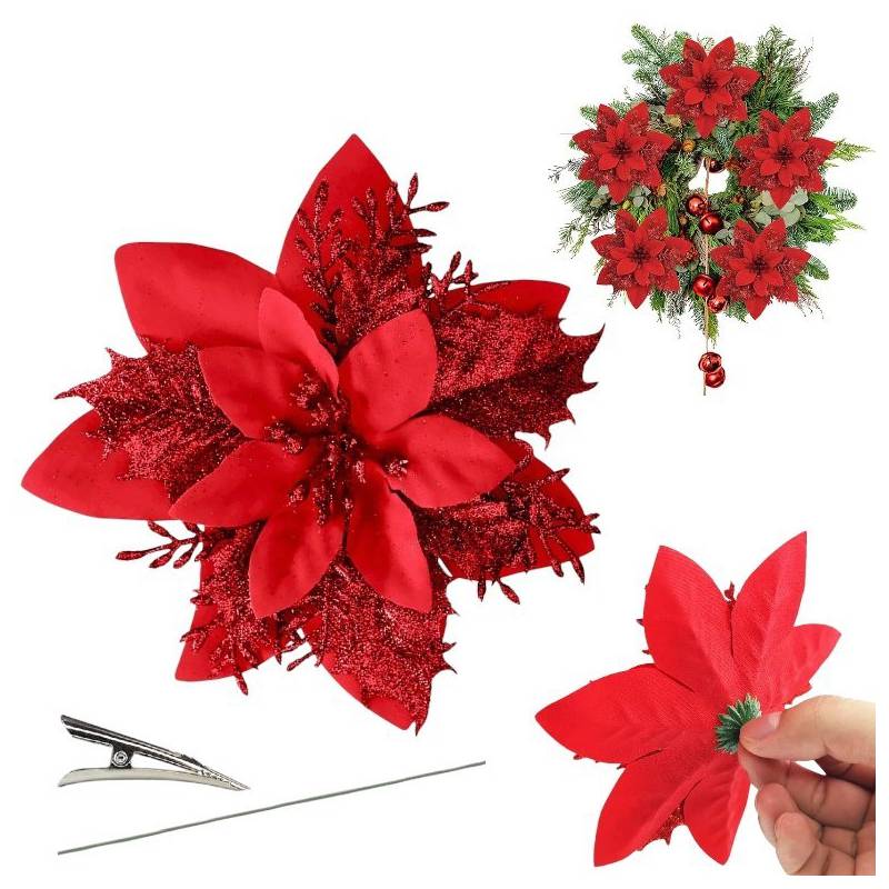 Kwiat Na Choinkę Z Klipsem Boże Narodzenie Xxl 14 Cm Brokat Czerwony Woz04Cze