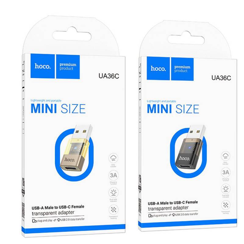 Hoco Adapter Usb A (Męski) Do Typ C (Żeński) Ua36C Transparentny Czarny