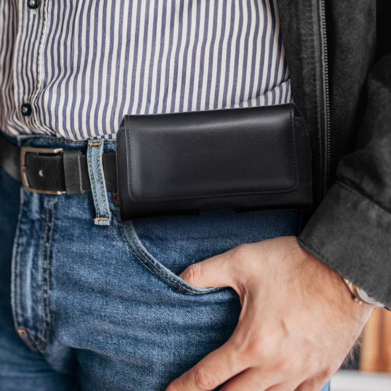 Skórzana Uniwersalna Kabura Pozioma Do Paska - Royal / Czarny - Rozmiar Xl - Do Iphone 13 Pro Max / 14 Pro Max / Samsung S21 Plu