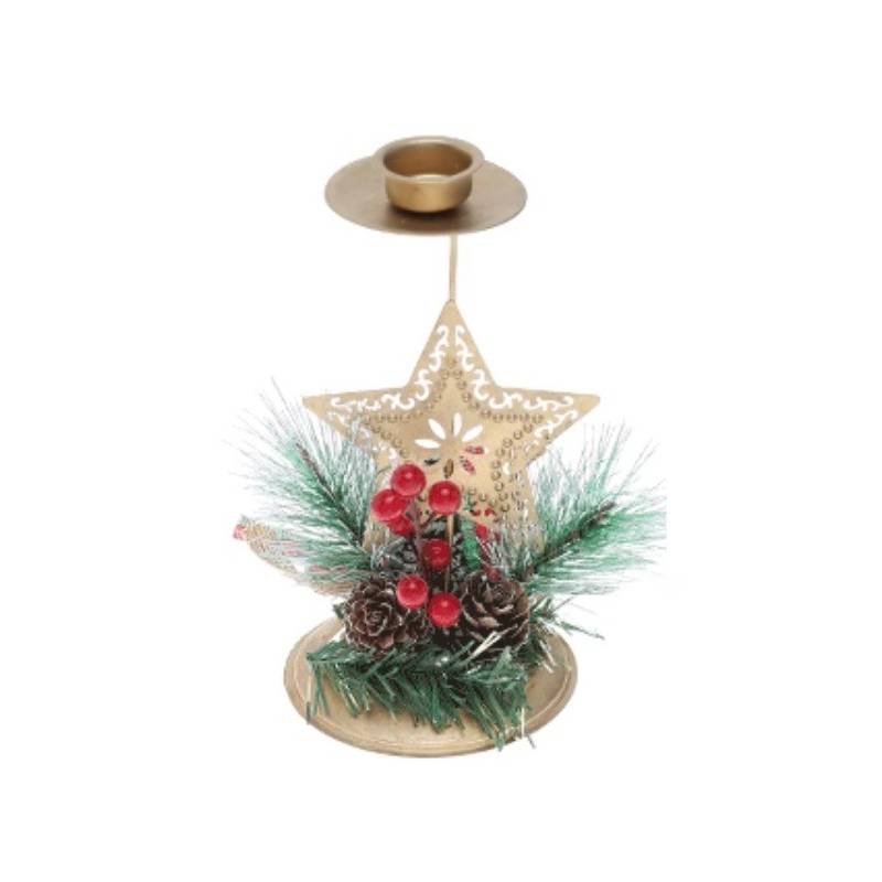 Świecznik Boże Narodzenie Złoty Ozdobny Na Stół Glamour 15 Cm Ksn122