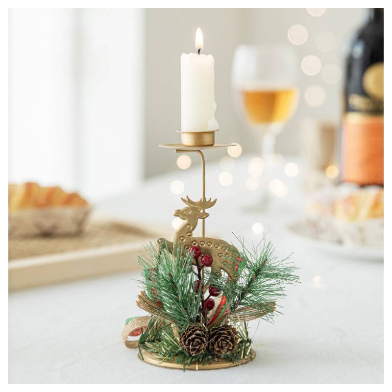 Świecznik Boże Narodzenie Złoty Ozdobny Na Stół Glamour 15 Cm Ksn123