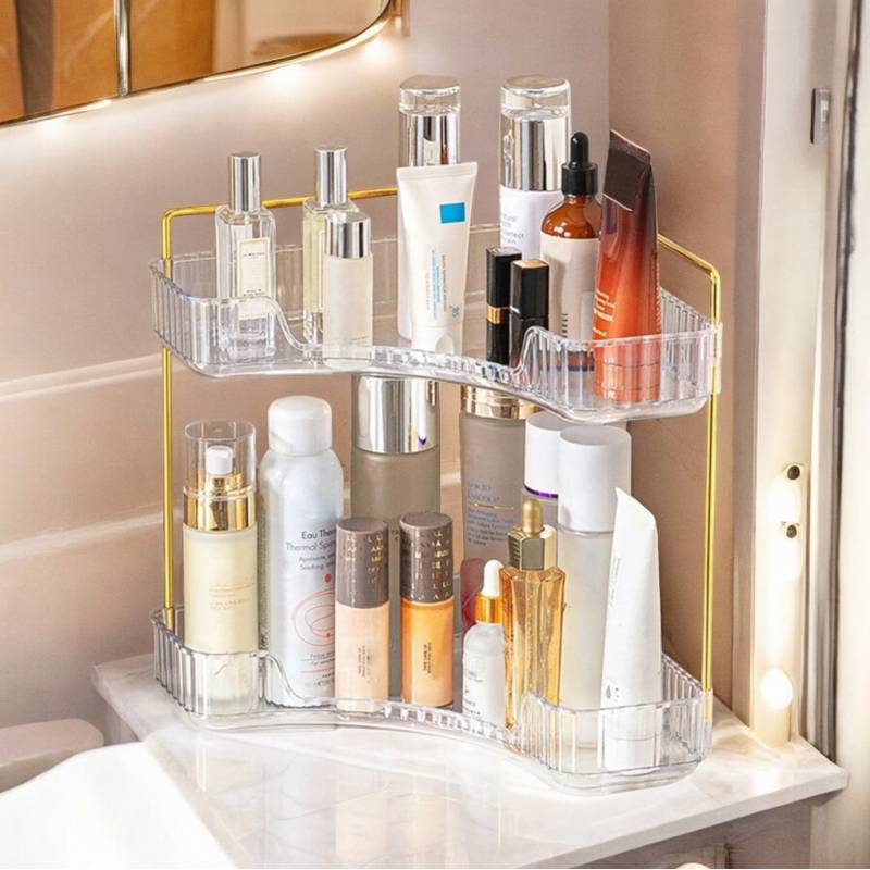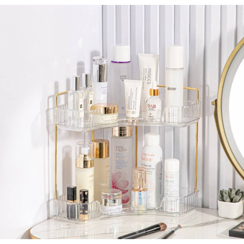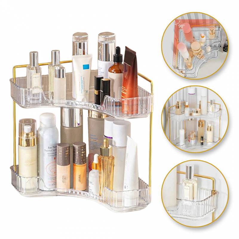 Stojak Do Łazienki Narożny Złote Uchwyty 2 Poziomy Ryflowany Cb51
