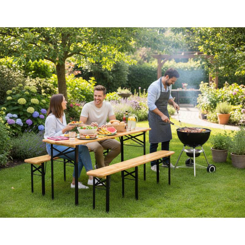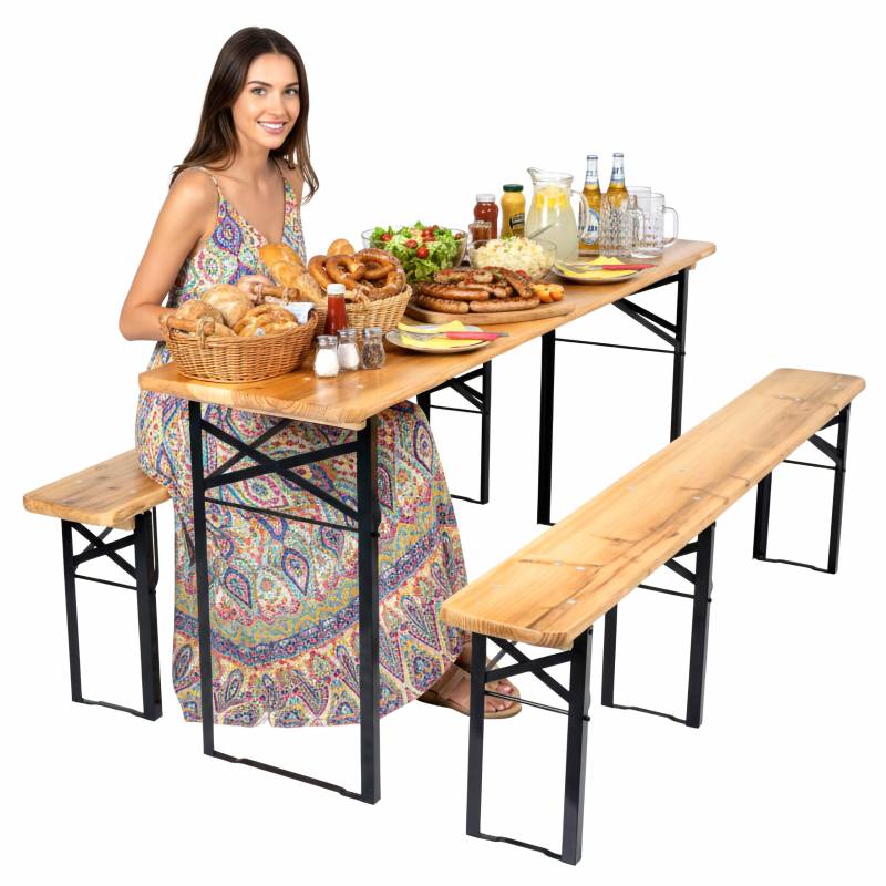Zestaw Stalowo-Drewniany Stół + 2 Ławki 170 Cm